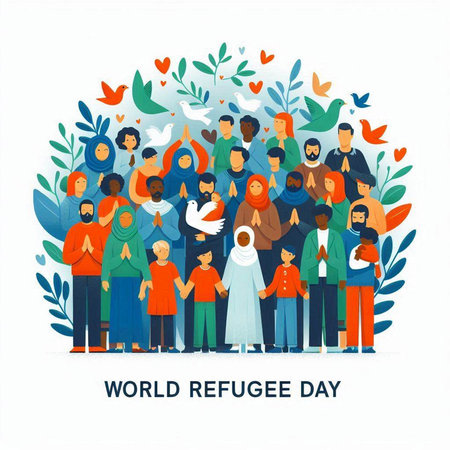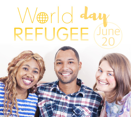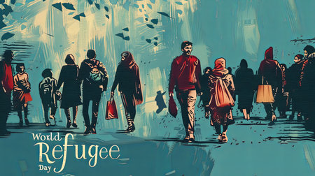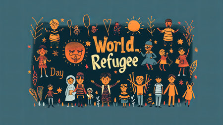 World Refugee Day banner with people sign illustration
