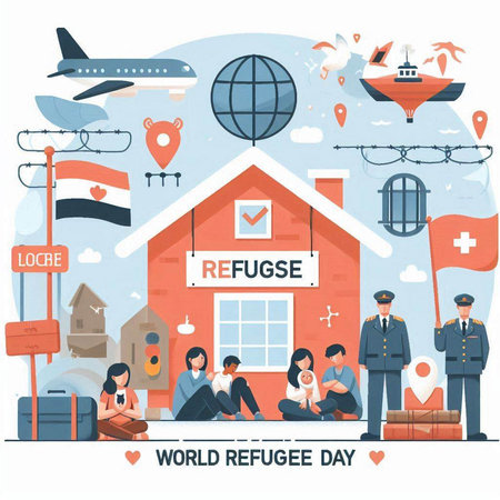 World Refugee Day. June 20. Holiday concept. Template for background, banner, card, poster with text inscription. Vector illustration.