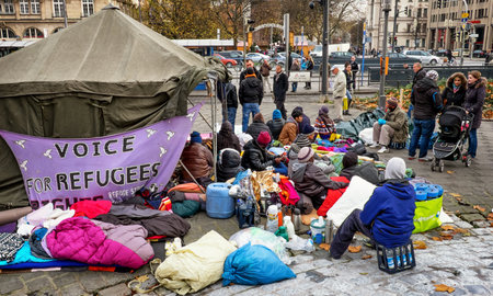 MUNICH, GERMANY - NOVEMBER 24 - Refugees on hunger strike at the sendlingertor on November 24, 2014 in Munich.