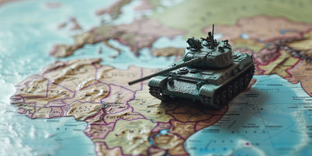 Strategic Board Game with Military Tanks and Soldiers on World Map