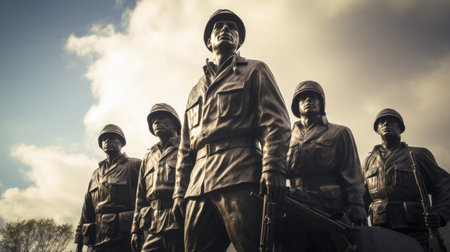 Soldiers of the World War II on the background of the sky