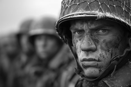 A group of soldiers in military uniform with mud on their faces