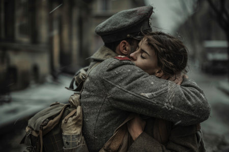 Enduring love: tender moments and unwavering devotion in the embrace of a soldier's heart.