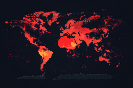 An abstract illustration presents a map of the world, highlighting continents with a textured, metallic appearance. The composition features a shallow depth of field, with focused lighting suggesting a dramatic effect. This image could be used for various commercial or editorial applications such as articles on global topics.