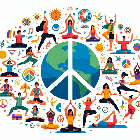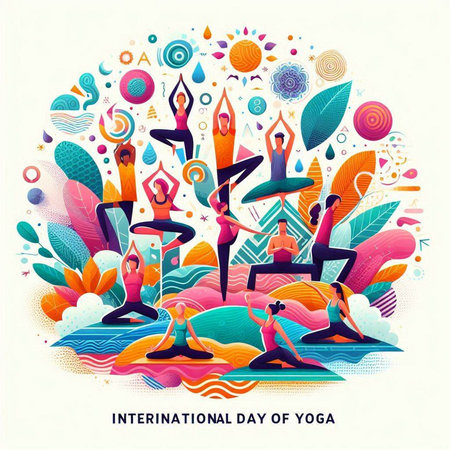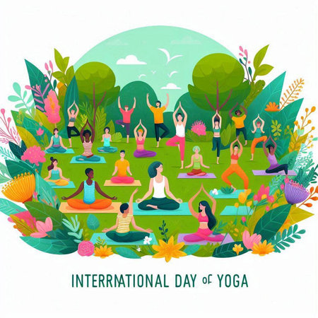 Celebrating International Day of Yoga - Diverse People in Unity with Nature.