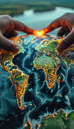 Hands from different cultures and ethnicities jointly holding the Earth, promoting diversity and unity