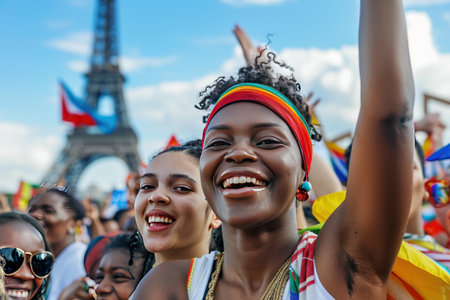 LGBT Paris Pride Parade participants, AI generative LGBTQ festival illustration