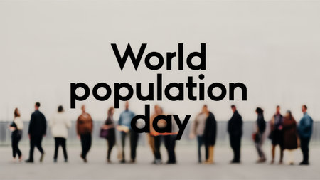 A group of people standing in a line with the words world population day, AI