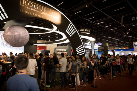 SAO PAULO - DECEMBER 2, 2016: Fans at Rogue One booth in Sao Paulo Comic Con Experience, the annual pop culture convention in Brazil.