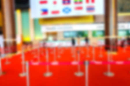 Blurred image of register counter and row at the exhibition hall for background usage.