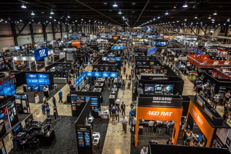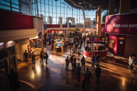 Vibrant trade exhibition a captivating scene of attendees engaging in a bustling venue