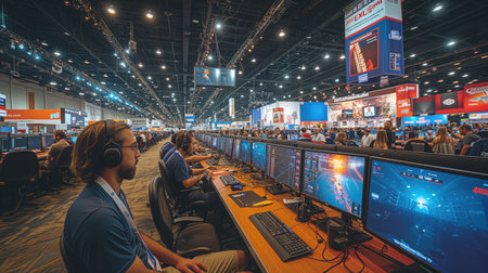 Dynamic high tech convention center showcasing cutting edge exhibits and innovation