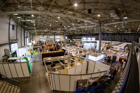 Poznan, wielkopolskie / Poland-September, 12, 2019: Exhibition stands at the Drema fair. Poznan International Fair. Summer season.