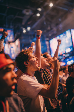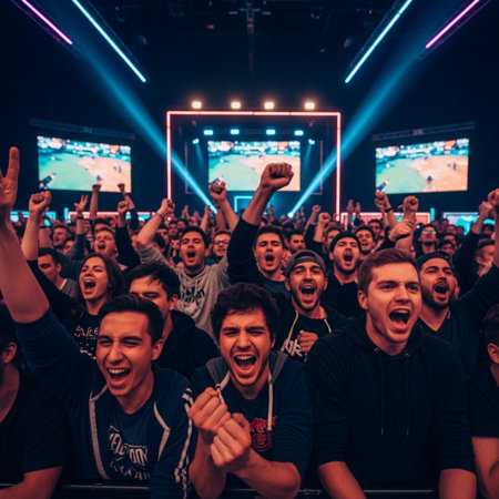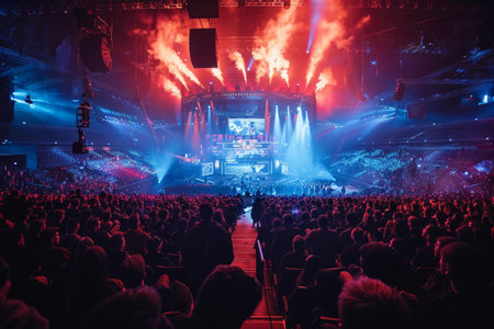 Crowded arena with vibrant lights at an intense esports gaming event