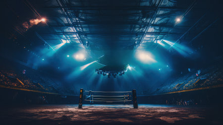 Epic empty boxing ring in the spotlight on the fight night AI