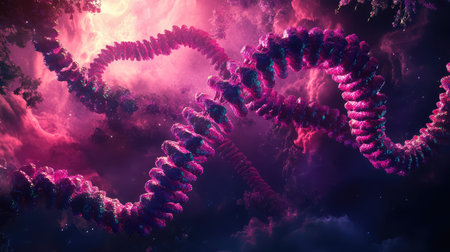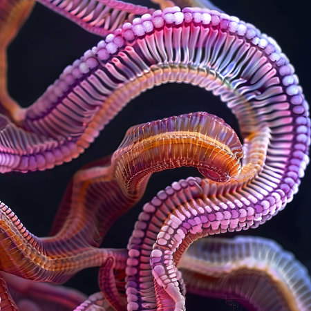 A close up of a bunch of worms with pink and purple colors, AI