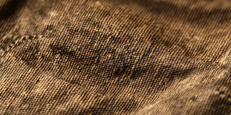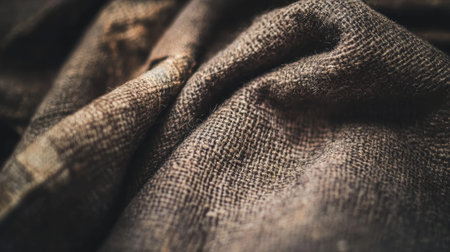 This image features a detailed close-up of brown fabric material, highlighting its soft natural fibers and intricate weave patterns, creating an inviting and warm ambiance.
