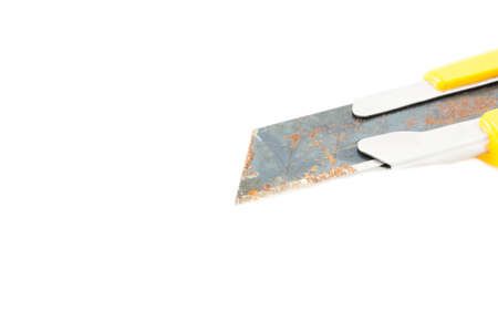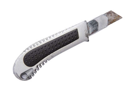 Old dirty cutter knife isolated on white background