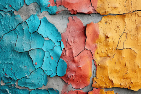 Abstract weathered plaster wall texture with colorful stains and cracks for creative design