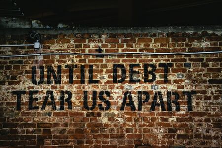 A textured, dark gray brick wall with visible cracks and rough surfaces, creating a gritty, industrial feel.