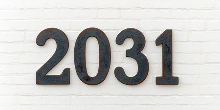 Futuristic Metal Numerals for Year 2031 with Vintage Texture and Modern Concept Style Artwork