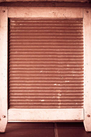 Architectural detail. Closeup of red striped wooden surface with frame as background texture or pattern.