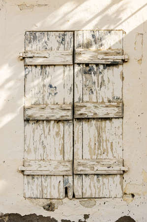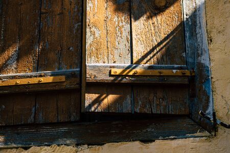 The textured weathered old wooden sun protection blinds