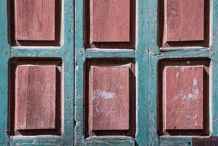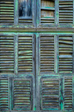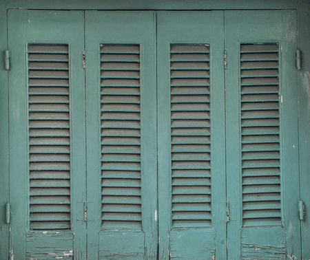 Vintage, vintage shutters on the Windows of green color on the whole screen. As a texture background