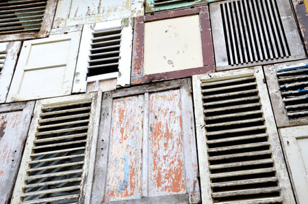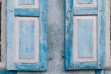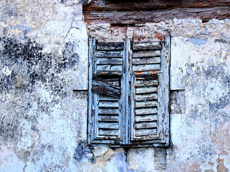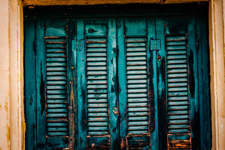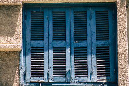 Limassol, Cyprus - December 03, 2021 Detailed close-up of an old window totally damaged by the weather of an old house in the old district of Limassol in Cyprus