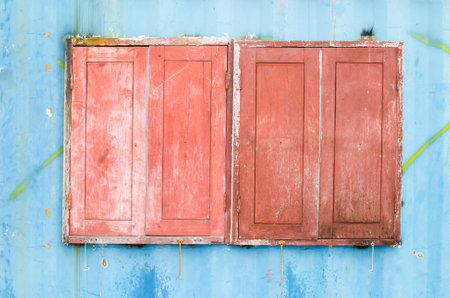 old vintage wood window on cement wall in country Thailand