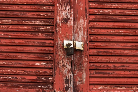 Old door red wood peeling paint and key