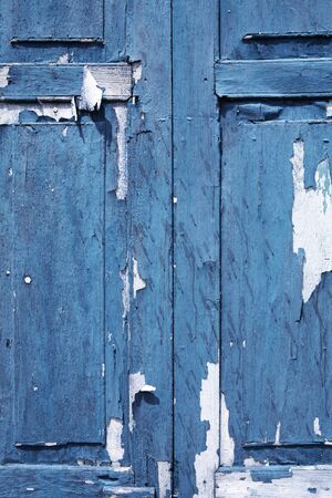 Old rustic wooden doors painted in white and blue.