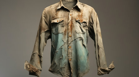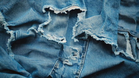 A close-up shot of a distressed denim jacket showcasing its unique fabric texture and rugged design, perfect for fashion and style themes.
