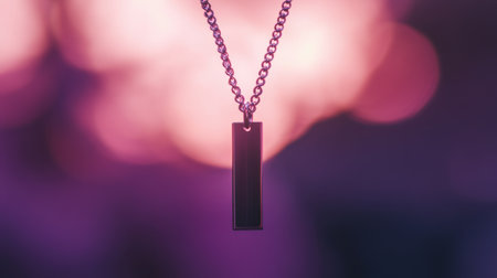 A stunning silver pendant necklace gracefully hangs against a dreamy bokeh background in soft purple and pink hues, perfect for showcasing elegance.