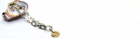 Jewelry chain on white background with copy space for text.