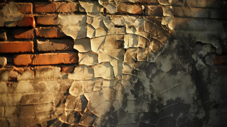 Weathered brick wall with peeling paint. Generative AI illustrator