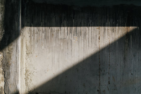 Textured concrete wall with long diagonal shadows from window light. Urban minimal background with subtle stains and surface details.