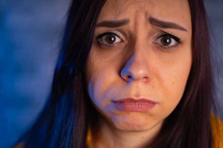 Portrait of unhappy young woman. Close up of sad facial expression of female