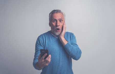 Handsome senior man isolated on gray background. Concept about the third age and seniority