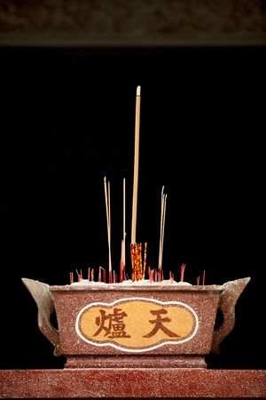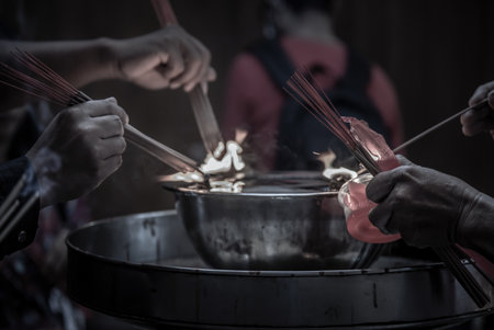Bangkok, Thailand - 27 Oct 2019 : Incense burning at a temple in Wat Mangkon Kamalawat, Bangkok