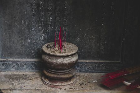 Red incense for Tet Holiday in the ancient Hon Chen Temple in Hue, Vietnam
