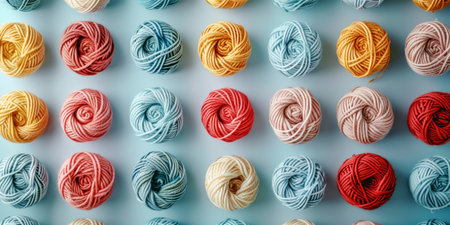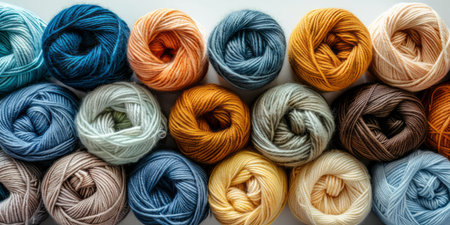 Soft, pastel yarn balls arranged on a cozy, knitted background. Perfect for showcasing textiles, crafting, and knitting inspiration in a homely setting.