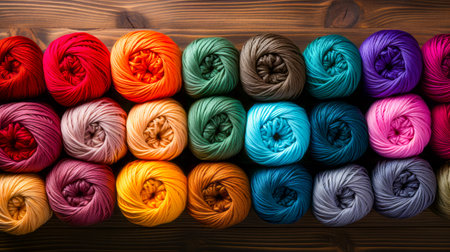 A Colorful cotton yarn balls neatly arranged in vibrant display