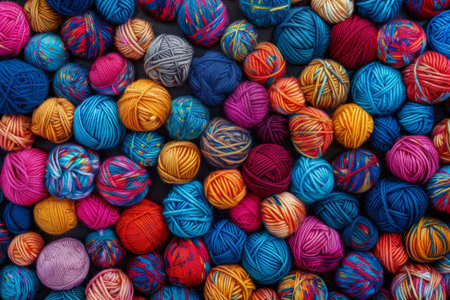 Many colorful balls of yarn create a vibrant and textured background, perfect for knitting and crochet projects. Ai generated image