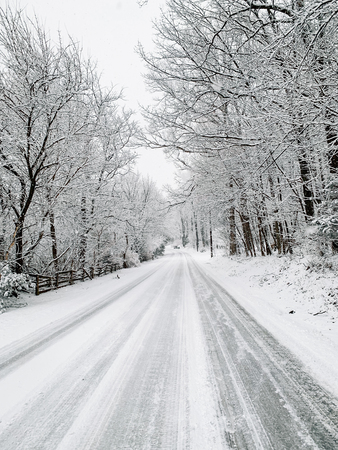 Snow covered country road in winter, Glen Rock, Pennsylvania