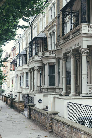 London/UK-30/7/18:Edwardian architecture terrace houses on Elgin Avenue.Terrace house is a form of medium-density housing that originated in Europe, whereby a row of attached dwellings share sidewalls