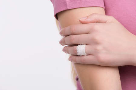 Plastic bandage cover wound in the arm Symbolize of first aid or emergency healthcare