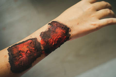 Close up of Zombie hand with blood. Horror and scary concept. Thriller concept.