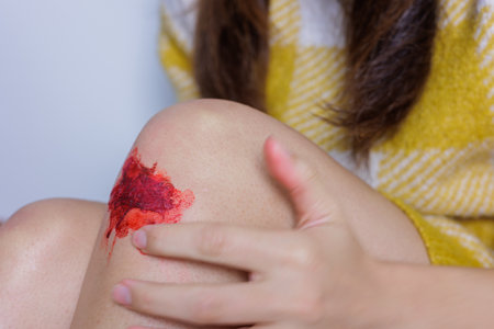 Close-up of a wound on the knee of a young woman.