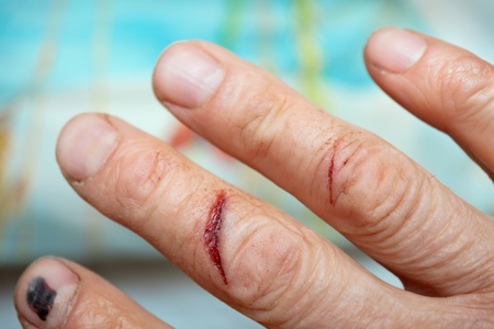 Flesh wound with blood on finger